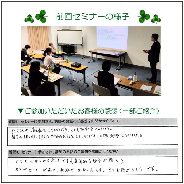 セミナー参加も質問のお時間も無料とさせていただいてます。