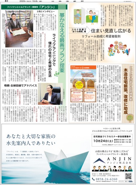 10月8日(木)の日本海新聞に当社への取材の内容が掲載されています。