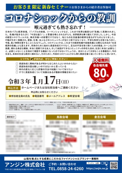 当社のお客さま、お客さまのご紹介者限定の新春セミナーについてのご案内です。