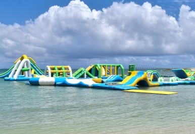 皆生の海に浮かぶ海上アスレチック「KAI・KAI」