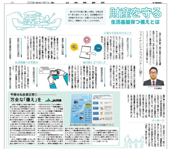 新聞の防災特集に記事が掲載されました。