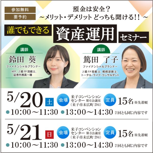 預金は安全?~メリット・デメリットどっちも聞ける!!~誰でもできる資産運用セミナー