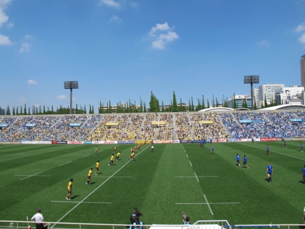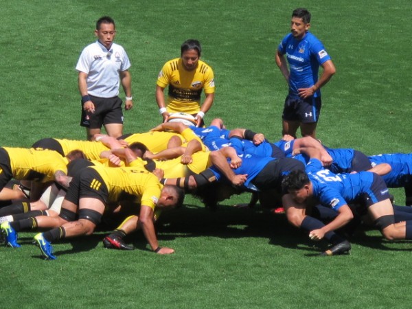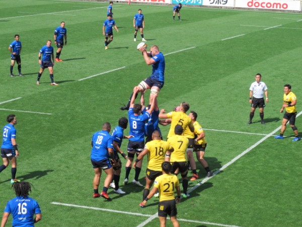 メインスタンド中央の前列からの観戦は、スクラムやボールの音、選手や審判の声がよく聞こえてきました。また、メインスタンド後方のベンチ入りしていない控え選手の大きな声が聞こえてきました。特にパナソニックの選手は元気で明るく、仲間を励ます声が多く、一体感があるチームだなと感じました。